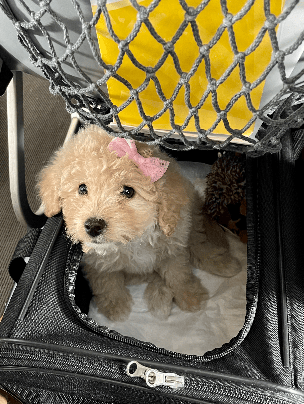 •I offer a VIP service. •No paws on the ground until 16 weeks. Not even the pet play pads at the airport. There are way too many diseases in these places for babies this young.