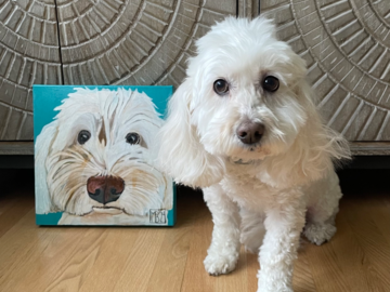 Celebrate or Memorialize your pet in a custom pet portrait from a photo by artist Meredith Brooks of Denver, Colorado. You will receive an 8x10 painting that is ready to hang or gift in hand within three weeks.